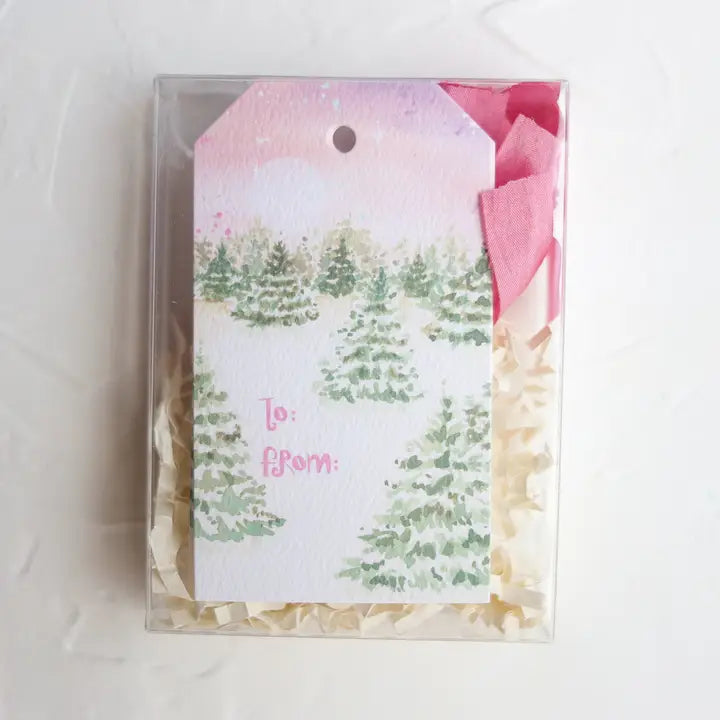 Holiday Tree Farm Gift Tag Set with Silk Ribbon