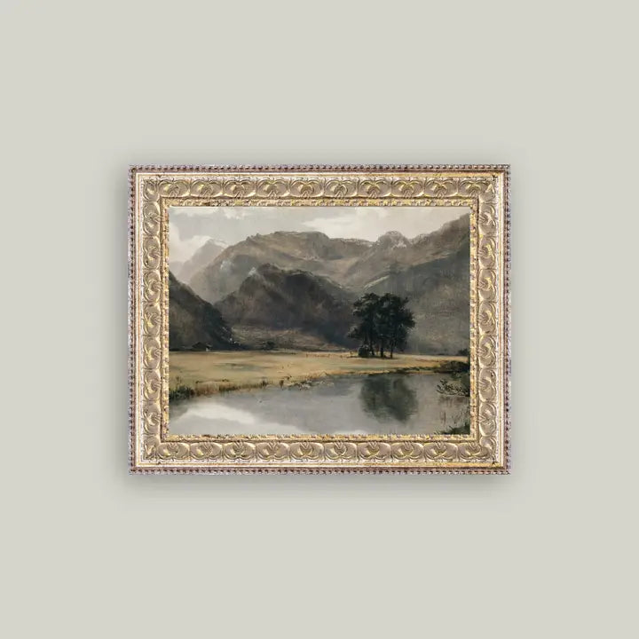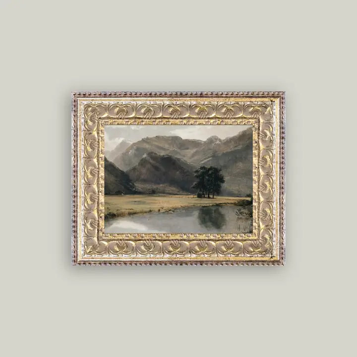 River Mountainscape Framed Antique Art