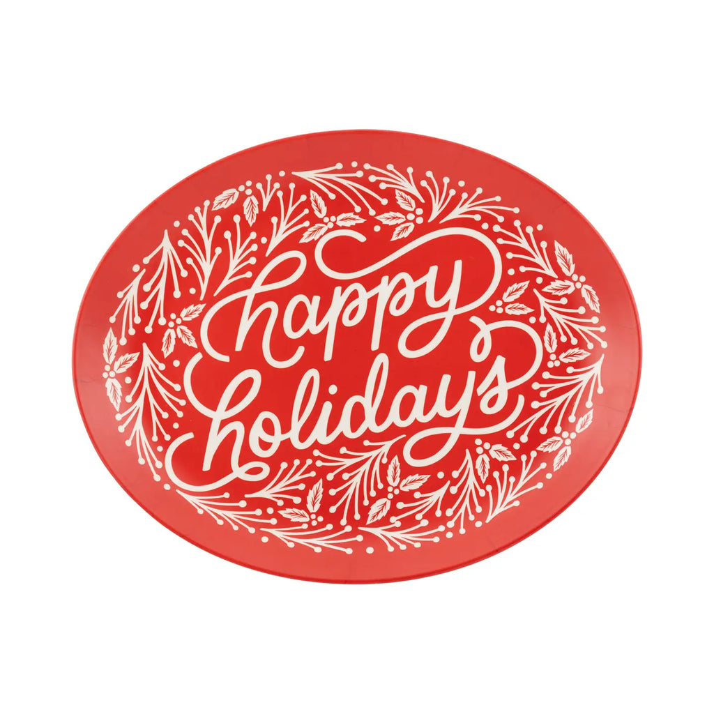 Happy Holidays Oval Bamboo Tray