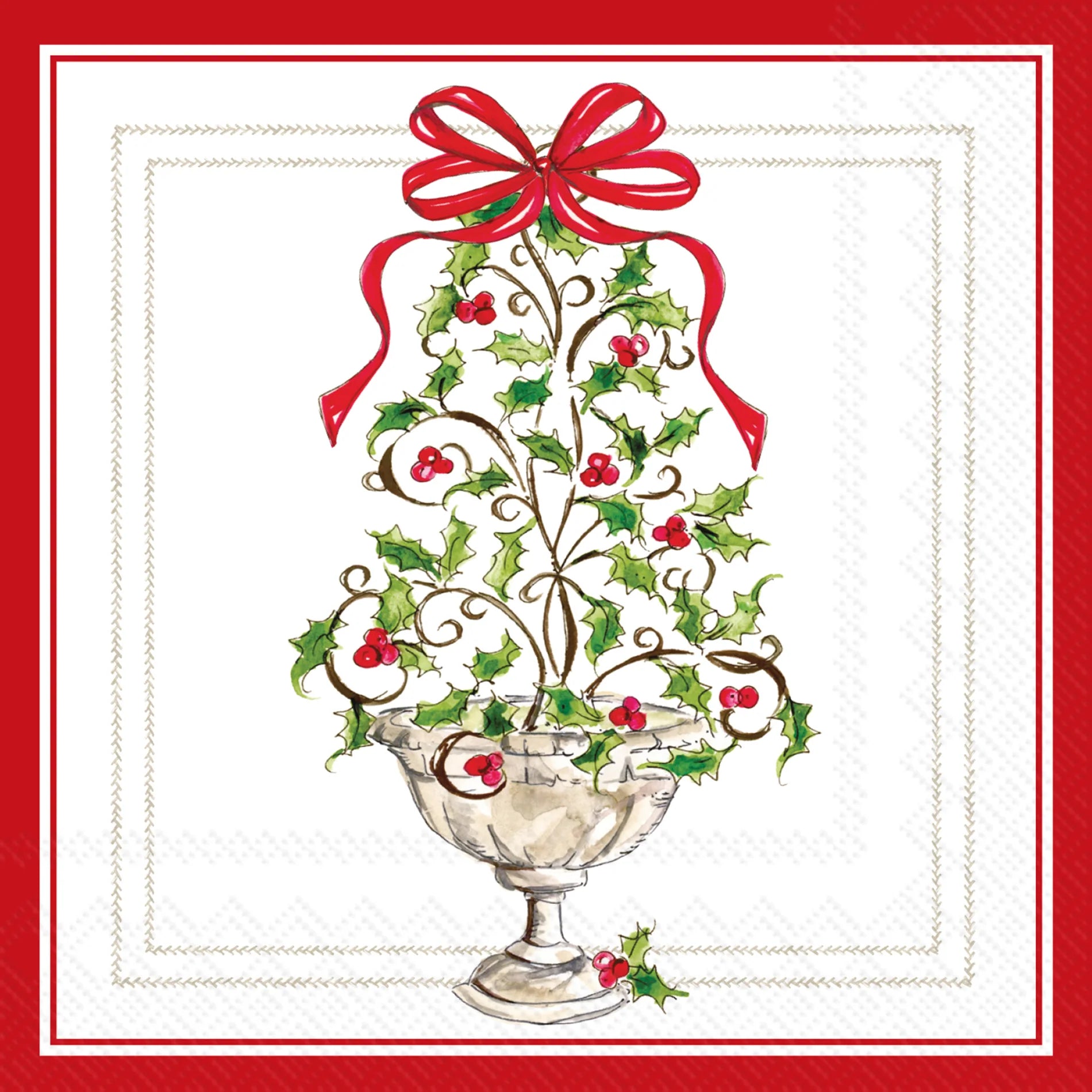 Holly Topiary Tree Cocktail Napkin