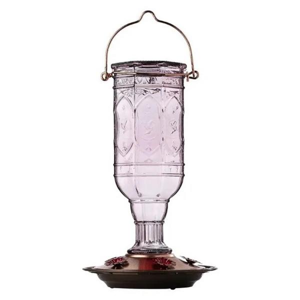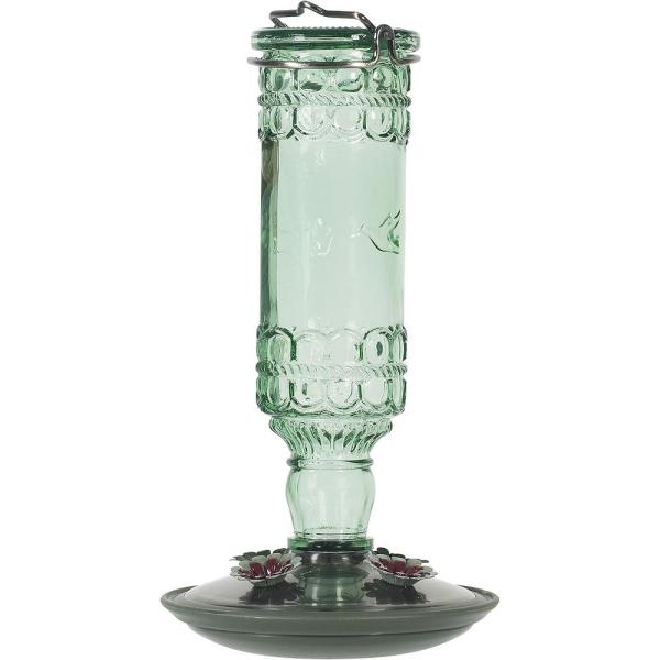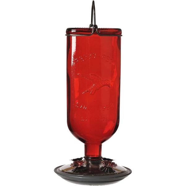 Elegant Antique Glass Bottle Hummingbird Feeder Red