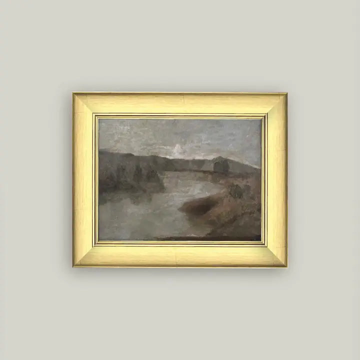 Hazy River Landscape Framed Antique Art